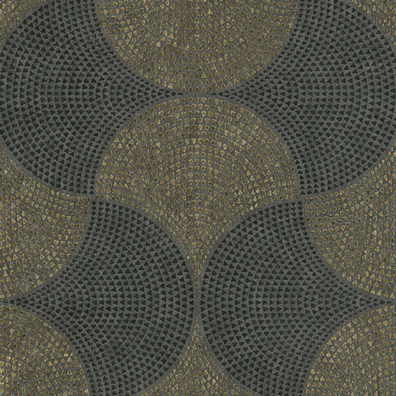 Enjoy the moody sophistication of this Art Deco-inspired wallpaper. Hundreds of small gold and black triangles create a flowing, fan-like mosaic. Bel Air is an unpasted, vinyl on non woven wallpaper.