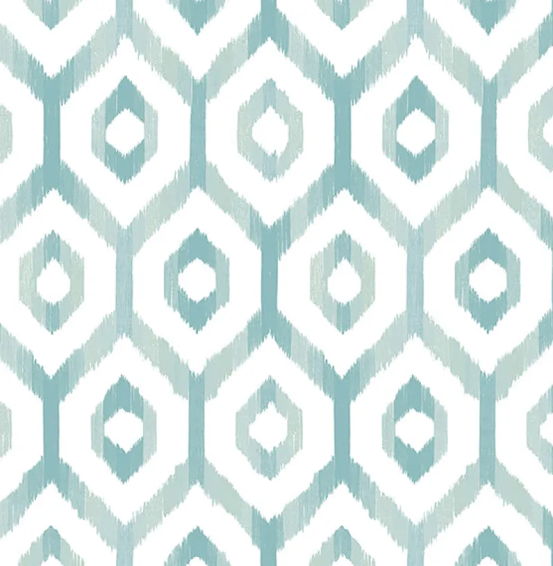 Brighten up your walls with this unique trellis wallpaper. Shades of turquoise and teal blend together to form a colorful background accented by an ikat texture. Lucia is a non woven, unpasted wallpaper.