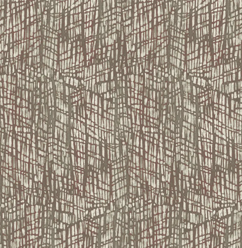 The abstract grey pattern of this wallpaper has delightful flashes of metallic raspberry ink. An edgy and modern treatment for walls.