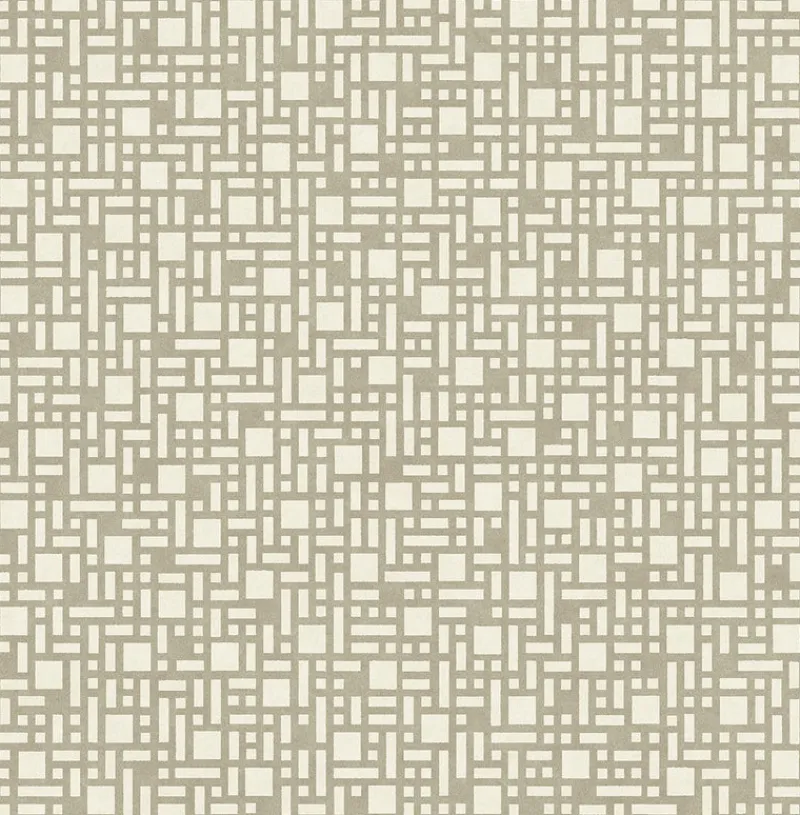 Taupe and off-white combine in a screen of small boxes. The geometric pattern adds a neutral design to walls. Bento is a unpasted, non woven wallpaper.
