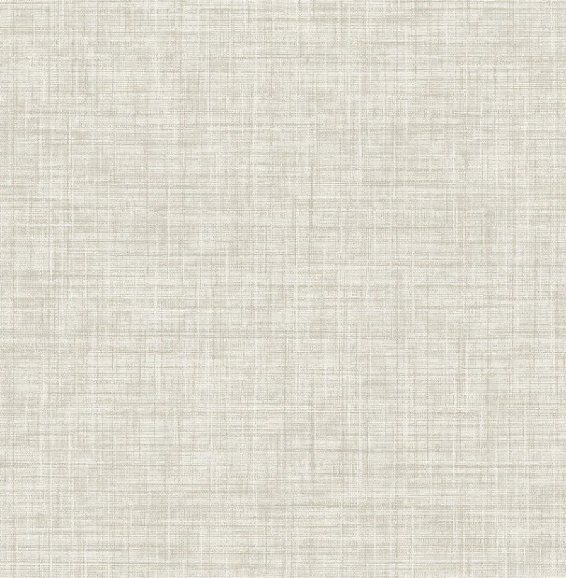 A beige faux linen wallpaper with a comforting feel. Its weathered details create a homey and inviting design. Mendocino is an unpasted, non woven wallpaper.
