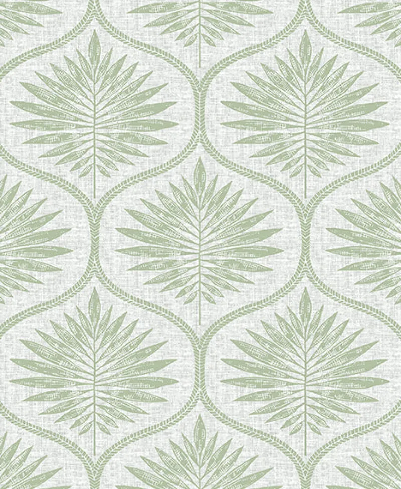 Add movement to walls with this curvy light green ogee design. Block print motifs led to its Scandinavian style, while a linen inspired background will add dimension to walls. Laurel is an unpasted, non woven wallpaper.