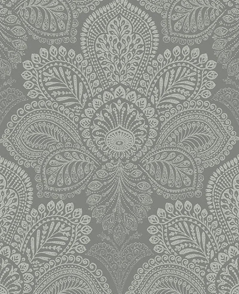 Create a boho chic look with this stunning wallpaper. Flowering off-white medallions blossom against a slate background, while raised inks and distressed details lend to its dimensional style. Triumph is an unpasted, non woven wallpaper.