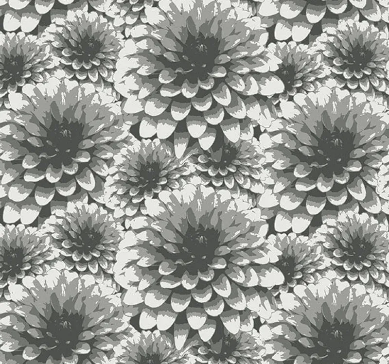 Larger than life flowers burst from this contemporary wallpaper. Charcoal, grey and white hues add a moody edge to its painterly style. Umbra is an unpasted, non woven wallpaper.