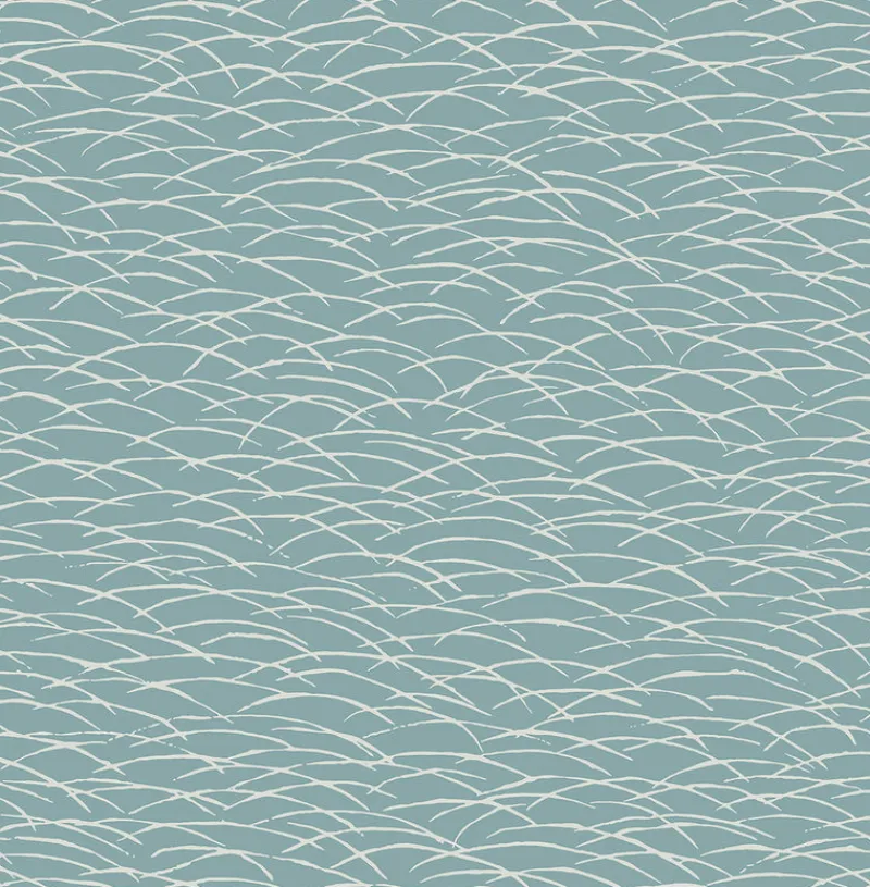 Add movement to walls with this abstract wave wallpaper. A white scalloped pattern leaps across a pleasant blue background, while hand painted accents create a textural effect. Hono is an unpasted, non woven wallpaper. Shop Terence Conran’s Plain Simple Useful wallpaper book from A Street Prints and Brewster at The Fabric Co. today!