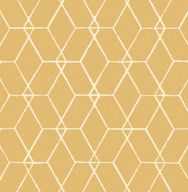 A geometric pattern effortlessly complements a linen inspired background in this classic trellis wallpaper. Its palette of cheerful yellow and crisp white hues will brighten up any space. Osterlen is an unpasted, non woven wallpaper. Shop Terence Conran’s Plain Simple Useful wallpaper book from A Street Prints and Brewster at The Fabric Co. today!