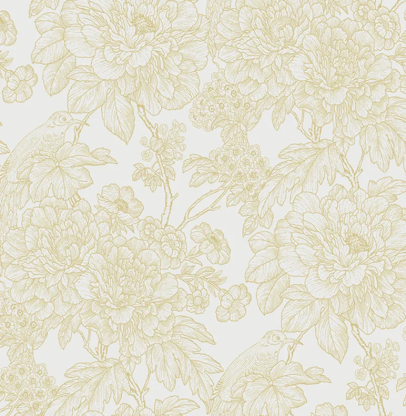 With a lively mustard hue, this nature inspired print is perfect for brightening up walls. Its hand drawn design features stunning bouquets of flowers and charming songbirds. Birds of Paraside Breeze is an unpasted, non woven wallpaper. Shop Perennial by A Street Prints at The Fabric Co. today!