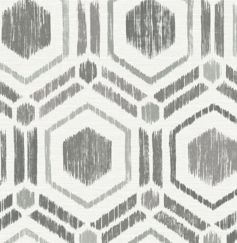 Complete with a textured and woven design, this wallpaper is made to resemble grasscloth. Its distressed grey and taupe geometric pattern with a suzani flair has a boho chic style. Borneo is an unpasted, non woven wallpaper. Shop Perennial by A Street Prints at The Fabric Co. today!