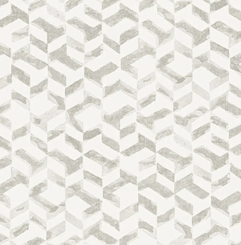 Pewter and off-white combine to create a dazzling linen inspired wallpaper. Its geometric pattern has an abstract flair perfect for contemporary homes. Instep is an unpasted, non woven wallpaper. See pattern 2902-25502 on page 18 and order a sample today!