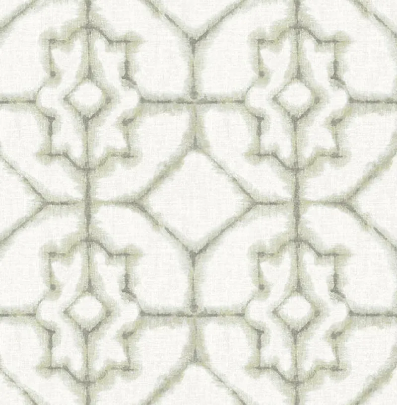 Modern with a boho touch, this moss trellis print features lovely floral details. Its earthy palette and shibori style combine for an organic flair. Verandah is an unpasted, non woven wallpaper. See pattern 2902-25531 on page 12 and order a sample today!