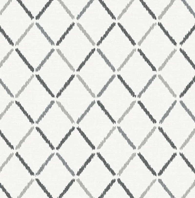 A linen inspired wallpaper with a contemporary edge, a grey and charcoal geometric pattern pops against an off-white background. Raised inks and its ikat flair effortlessly complement its woven design. Allotrope is an unpasted, non woven wallpaper. See pattern 2902-25534 on page 44 and order a sample today!
