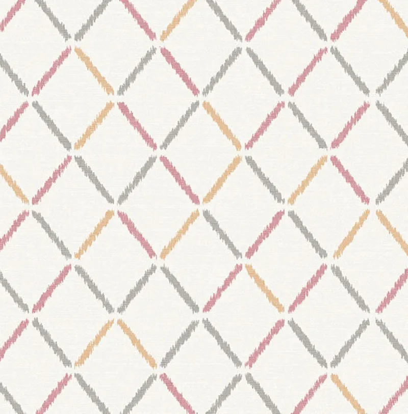 With raised inks and a tightly woven design, this wallpaper is made to resemble linen. Pops of pink and mustard add a friendly charm to its grey ikat print. Allotrope is an unpasted, non woven wallpaper. See pattern 2902-25536 on page 42 and order a sample today!