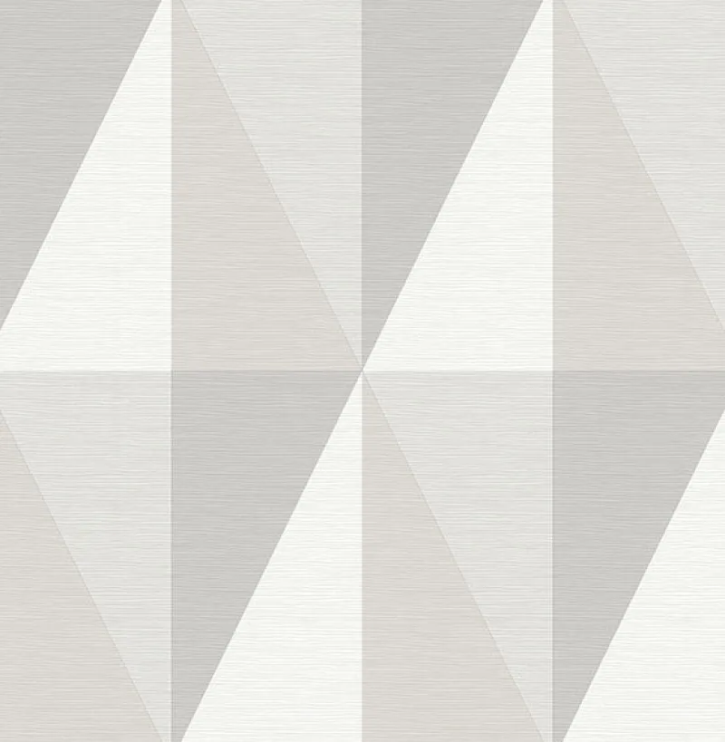 A traditional faux grasscloth with a contemporary twist, this wallpaper features diamond design. Its grey and silver geometric print is accented by raised inks and mica details. Aspect is an unpasted, non woven wallpaper. See pattern 2902-25540 on page 50 and order a sample today!