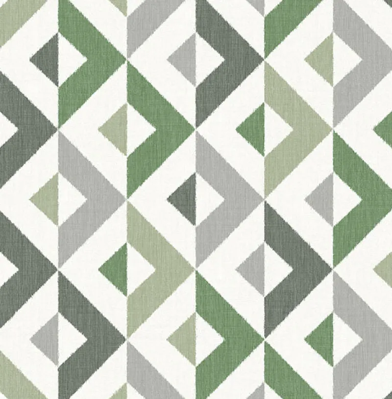 Evergreen hues with grey undertones strike this linen inspired backdrop. Creating a diamond geometric design with raised inks, this contemporary print is a chic wallpaper. Seesaw is an unpasted, non woven wallpaper. See pattern 2902-25543 on page 60 and order a sample today!