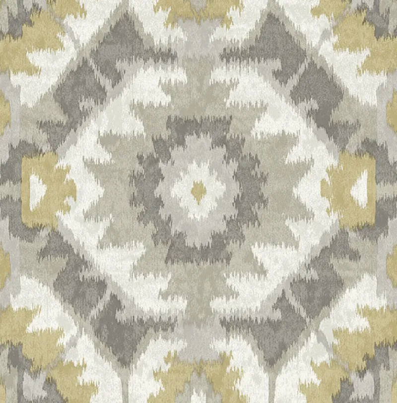 Grey, mustard and off-white hues combine to create this beautiful southwestern wallpaper. Its shibori design features dazzling medallions and geometrics. Kazac is an unpasted, non woven wallpaper. See pattern 2902-25549 on page 21 and order a sample today!