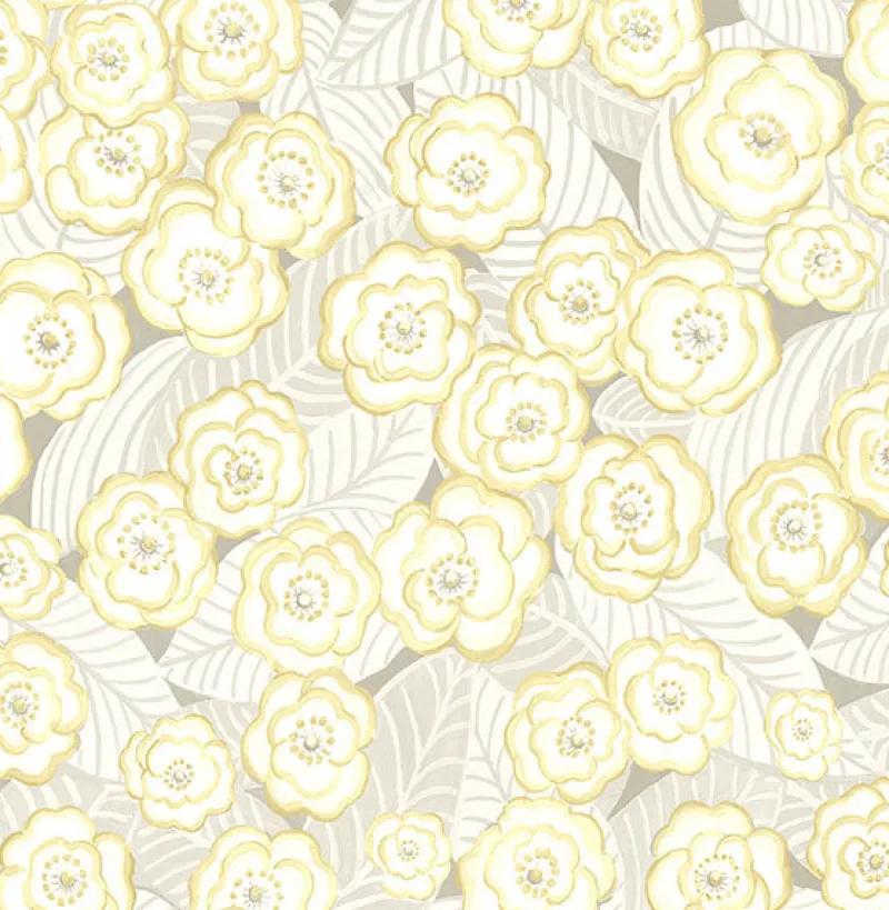 Charming and sweet, this painterly floral wallpaper has an eclectic charm. Its palette of light yellow and grey hues adds a modern touch to its whimsical style. Emery is an unpasted, non woven wallpaper.