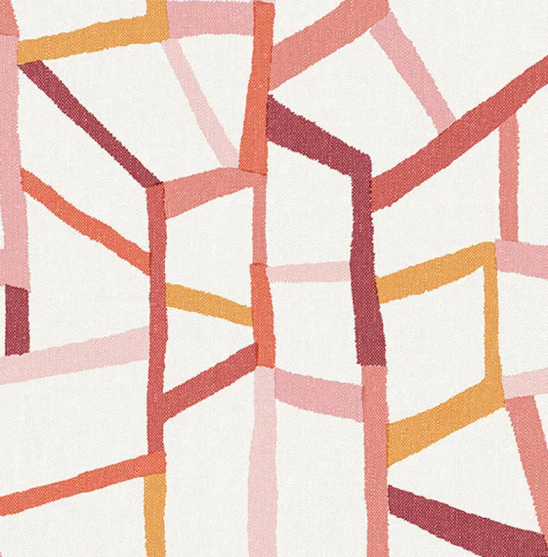 Create a dimensional look with this abstract linen inspired wallpaper. Warm coral, magenta, orange and pink geometrics dazzle against a subtly textured background. Tate is an unpasted, non woven wallpaper.
