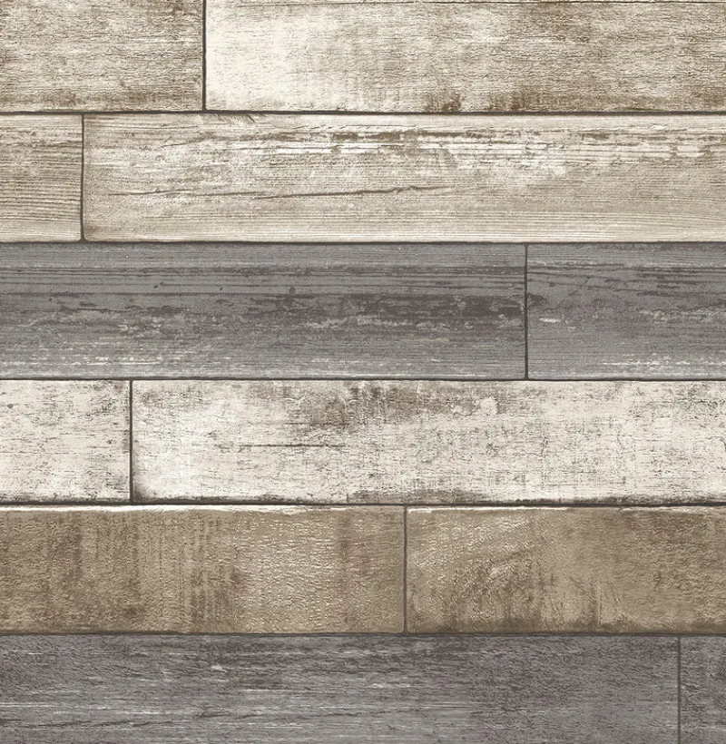 A wood inspired wallpaper features brown, taupe, and slate colored planks. Weathered accents lend to its realistic look, perfect for any home. Porter is an unpasted, non woven wallpaper. Pattern 2922-22345 from A Street Print’s Trilogy wallpaper book by Brewster would make a beautiful addition to any room in your home!