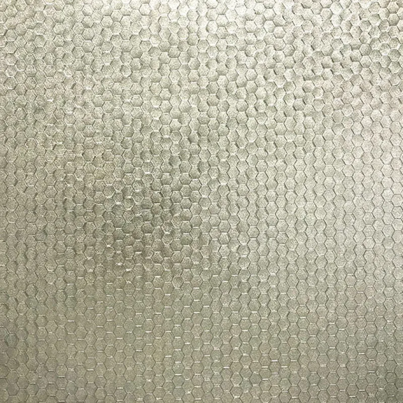 Add a dimensional effect to walls with this stunning geometric design. With a silver hue and warm undertone, this wallpaper will give any space a futuristic new look. Carbon is an unpasted, solid sheet vinyl wallpaper.