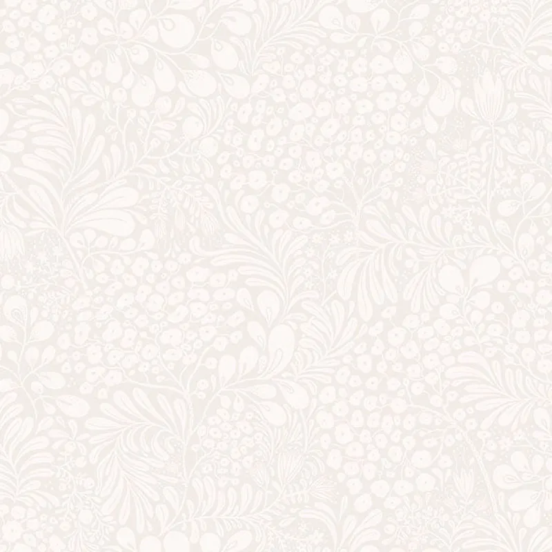 Create a calm and welcoming space in your home with this Scandinavian-inspired wallpaper. Delicate florals and lush leafy trees inked in white twist together against a light grey backdrop. Siv is an unpasted, non woven wallpaper.