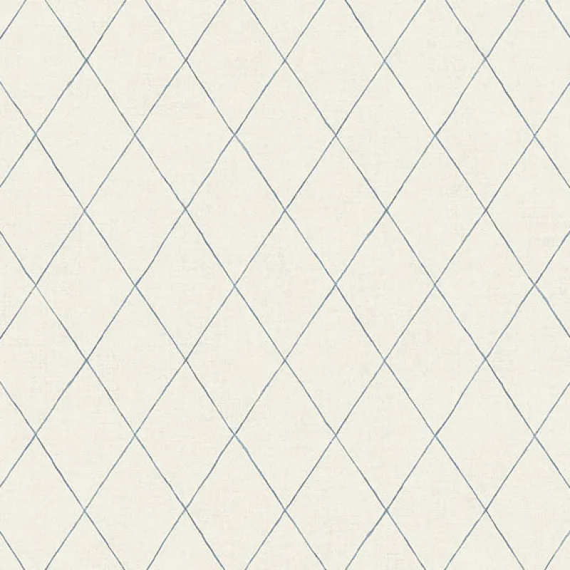Perfect for coastal homes and farmhouses alike, this diamond print has weathered features. Its blue hue effortlessly complements a crisp white background. Rhombus is an unpasted, non woven wallpaper.