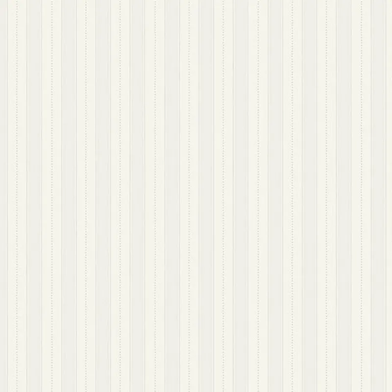 A traditional wallpaper with a Scandinavian flair, this design features alternating solid and dotted stripes. Its palette of white and silver hues will brighten any space. Symphony is an unpasted, non woven wallpaper.
