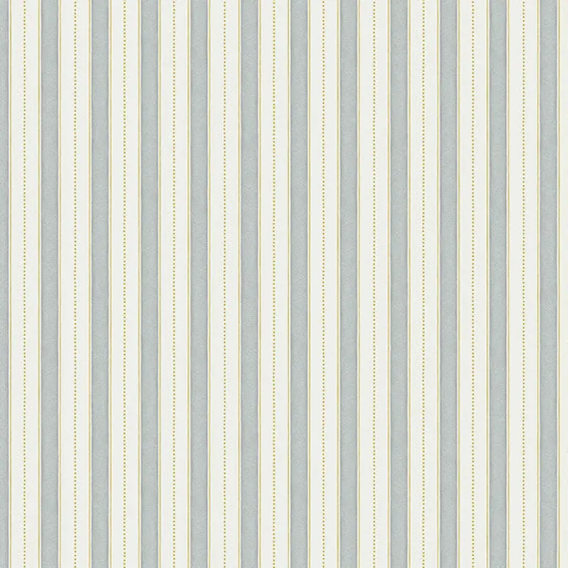 Alternating light blue and white stripes make up this charming print. Its transitional design is complete with gold dots and subtle faded accents. Symphony is an unpasted, non woven wallpaper.