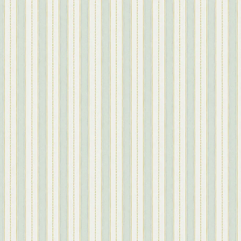 With alternating light green and white stripes, this transitional wallpaper has an eclectic charm. Gold dots and subtle metallic accents add a touch of sparkle to its darling design. Symphony is an unpasted, non woven wallpaper.