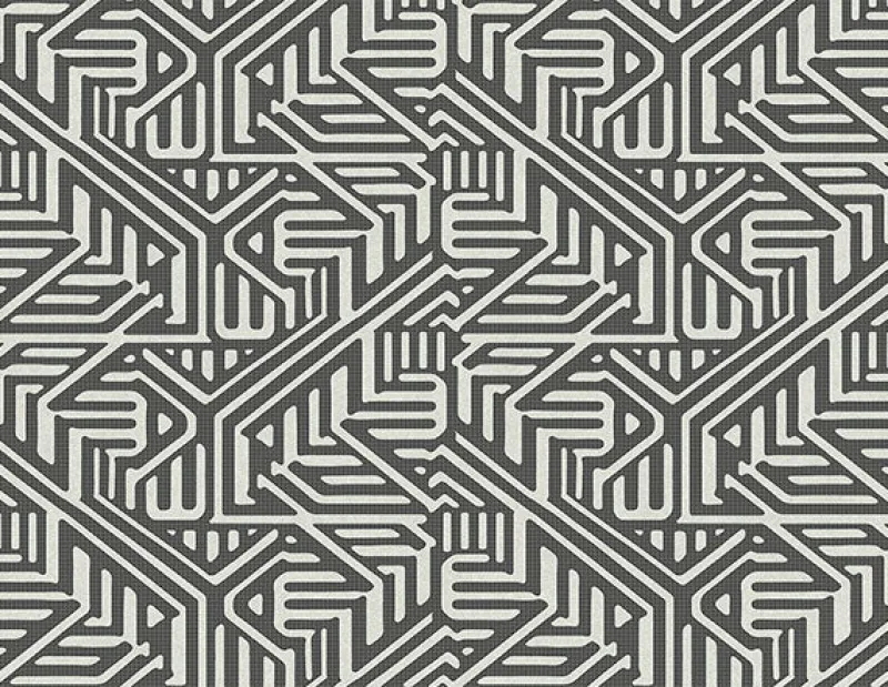 An off-white geometric pattern pops against a charcoal background in this globally inspired wallpaper. Its textured design will add dimension to walls. Nambiti is an unpasted, fabric backed vinyl wallpaper.