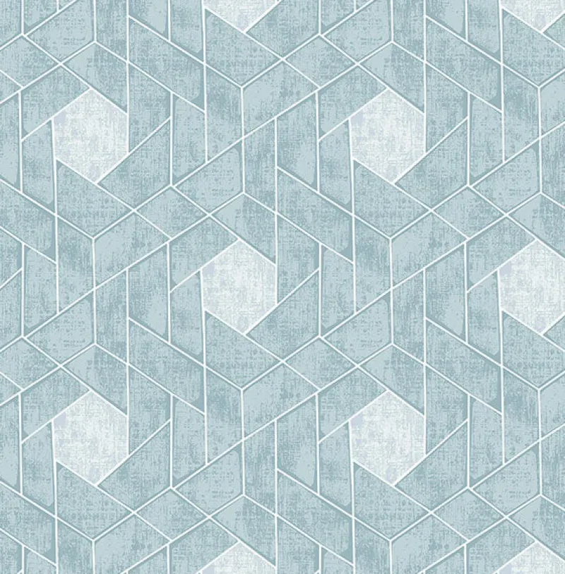 Distressed aqua geometrics with silver details combine for a spectacular geometric design. Granada’s abstract flair and stunning color palette create a sophisticated yet edgy look. Granada is an unpasted, non-woven wallpaper.