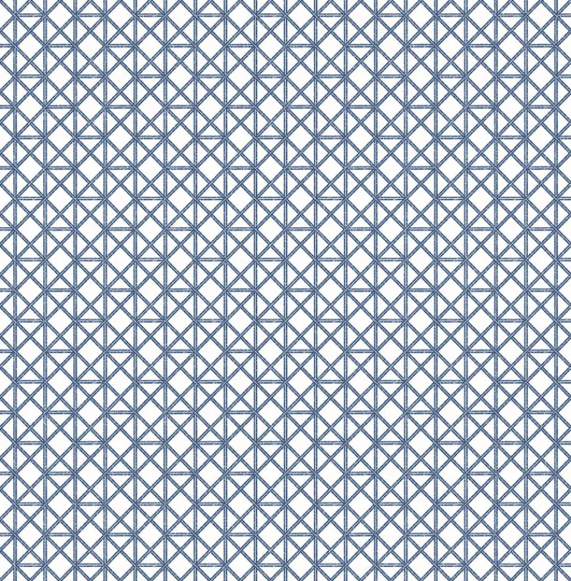 Create an airy, coastal look with this delicate trellis wallpaper. Blue reeds are woven together in a complex array of squares and triangles against a stark white backdrop. Lisbeth is an unpasted, non woven wallpaper.