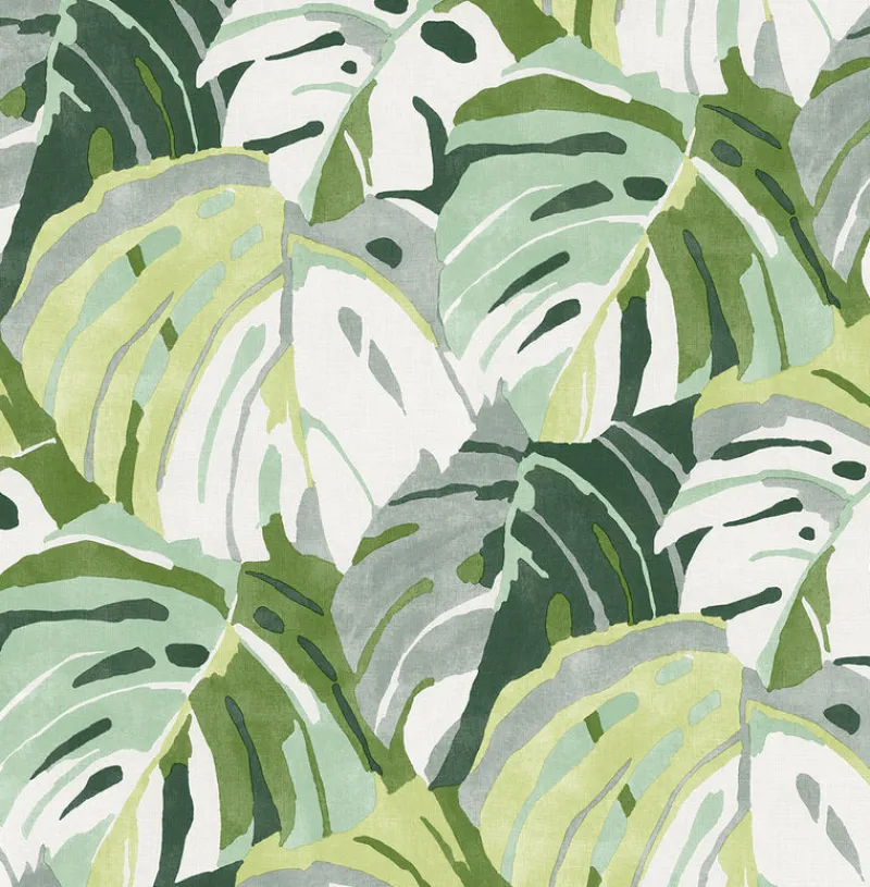 This vibrant botanical wallpaper features monstera leaves colored in shades of green, grey and white for that perfect touch of tropical flair. Samara is an unpasted, non woven wallpaper.