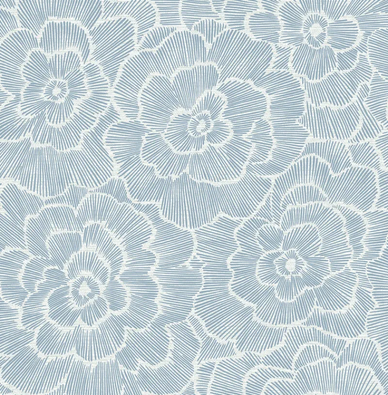 Flowers seem to burst into bloom in this dynamic floral wallpaper. Set against a grey, grasscloth patterned backdrop, bold dashes of dark grey raised ink shape each petal and add a tactile element to the design. Periwinkle is an unpasted, non woven wallpaper.