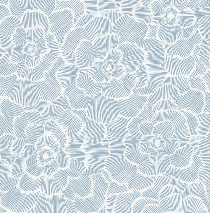 Blooms appear to unfurl before your very eyes in this dynamic floral wallpaper. Set against a grasscloth patterned background, each petal is composed of strong strokes of blue raised inks, giving each flower texture and a sense of motion. Periwinkle is an unpasted, non woven wallpaper.