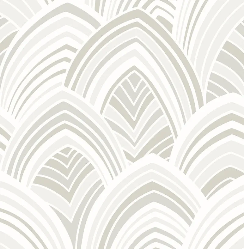 Tropical leaves have never looked more lavish. Simplified leaves form staggered layers of arches, with silver and platinum insets and a luxurious white flock outlining giving this design a glamorous finish. CABARITA is an unpasted, non woven wallpaper.