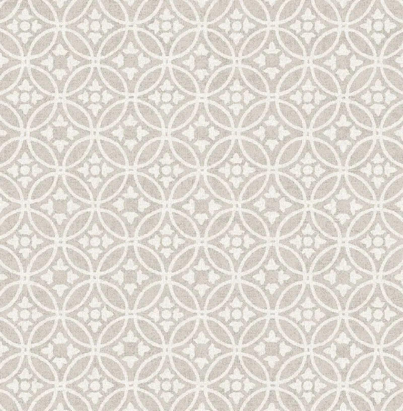 This geometric design is the perfect charming accent for your walls. The white overlapping rings are each accented with a simple floral stamp, all softly accented by the distressed grey backdrop. Larsson is an unpasted, non woven wallpaper.
