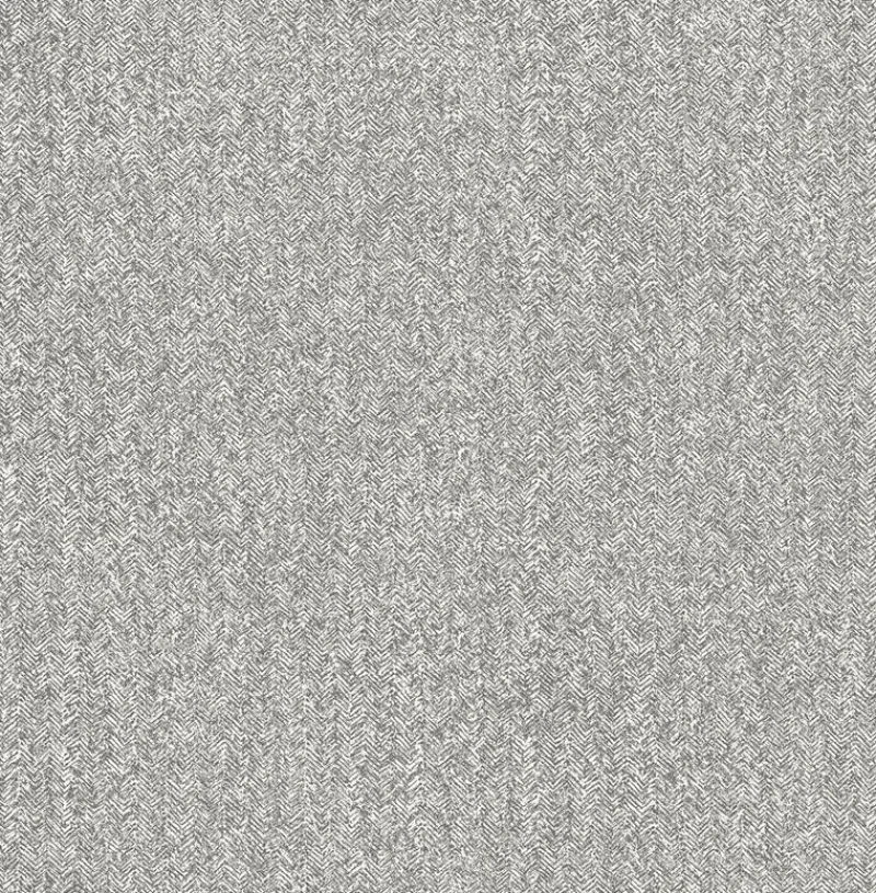 Add a refined and textural look to your room with this stunning faux fabric design. The blend of white and dark grey hues form a delicate, distressed chevron pattern that’s reminiscent of woolen tweed. Ashbee is an unpasted, non woven wallpaper.