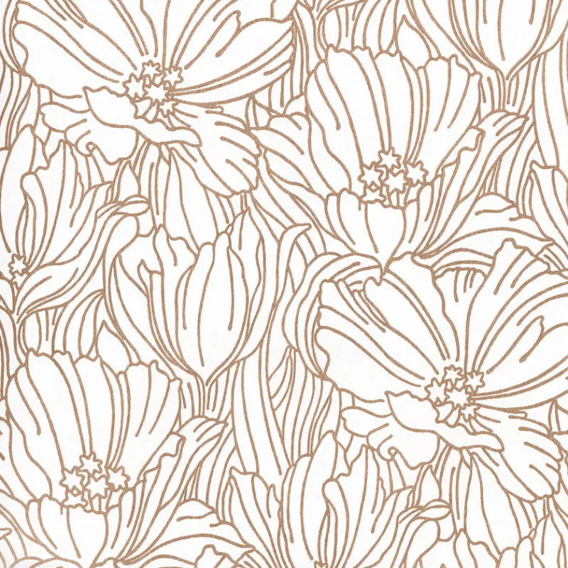 Delight in the dramatic Art Nouveau stylings of this gorgeous floral wallpaper. Luxuriously large poppies are illustrated in lines of metallic copper ink against a white backdrop. Selwyn Metallic is an unpasted, non woven wallpaper.