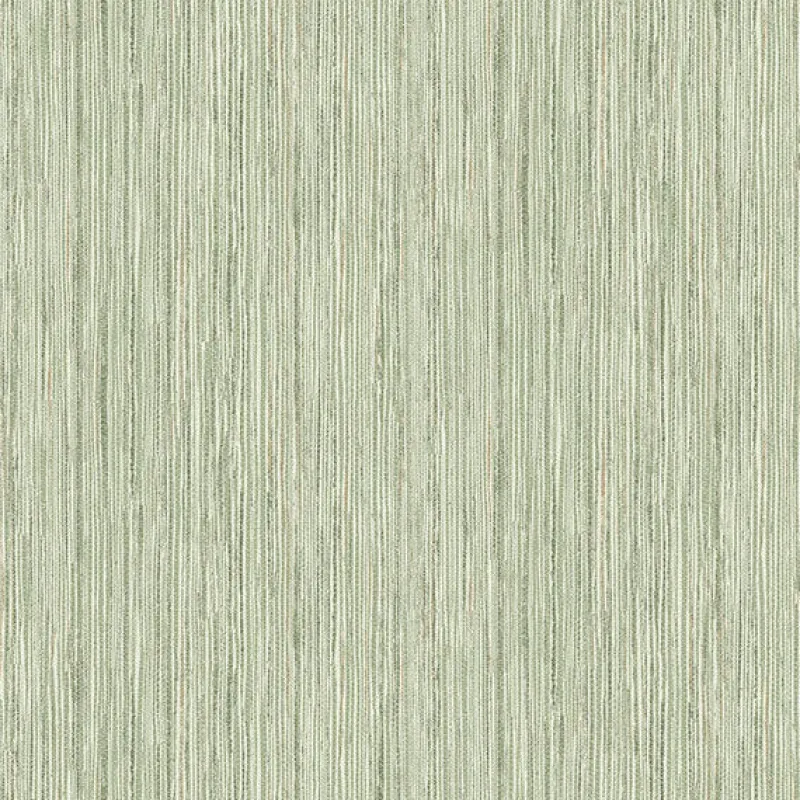 Bring a luxurious and earthen look to your walls with this faux grasscloth design. Vertical strips of cream and sage green, occasionally accented with golden brown, are connected by silver raised ink stitches. Justina is an unpasted, non woven fabric backed vinyl wallpaper.