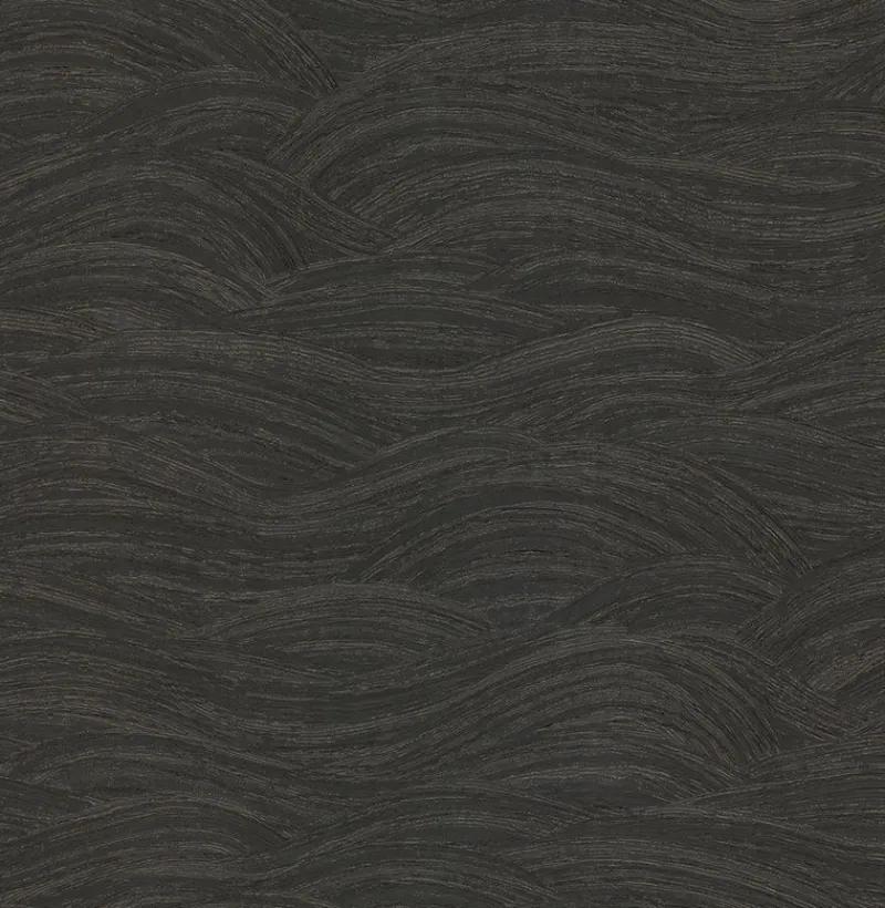 This dramatic yet soothing wallpaper will transform your space into an oasis of calm. The embossed waves unfurl in loose arches, the embossed black base brushed with a pearlescent gold. Leith is an unpasted, non woven fabric backed vinyl wallpaper.