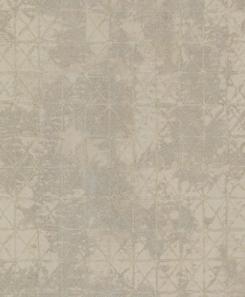 Bring Old World elegance to your walls with this geometric design! The triangular tiles form a simple mosaic of golden greys, the distressed areas both raised and finished with a silken sheen. Odell is an unpasted, non woven fabric backed vinyl wallpaper.