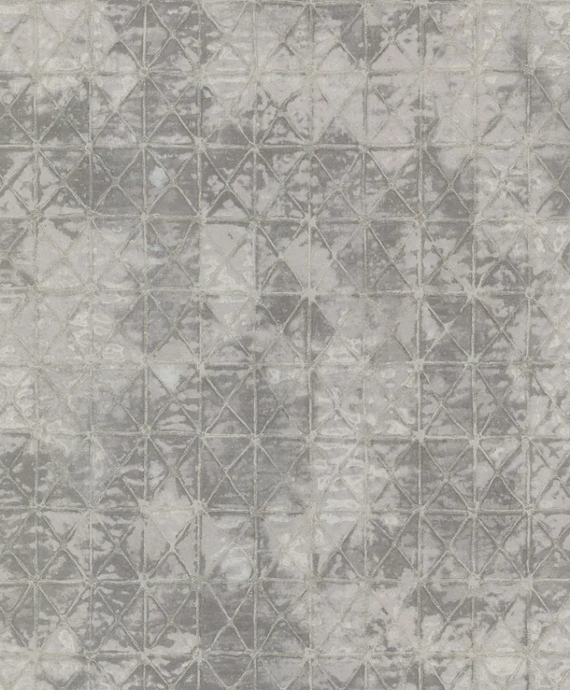 Enjoy the look of antique tile with this geometric wallpaper. The triangular segments are a range of mottled greys, with silverly grout lines finished with a subtle, silken sheen. Odell is an unpasted, non woven fabric backed vinyl wallpaper.