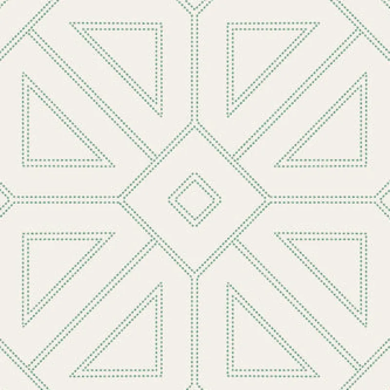 Enjoy a fan-favorite design in a new glamorous hue! This luxurious geometric wallpaper features green beaded dots that form a large-scale pattern against a pearlescent silver backdrop. Voltaire is an unpasted, non woven wallpaper.