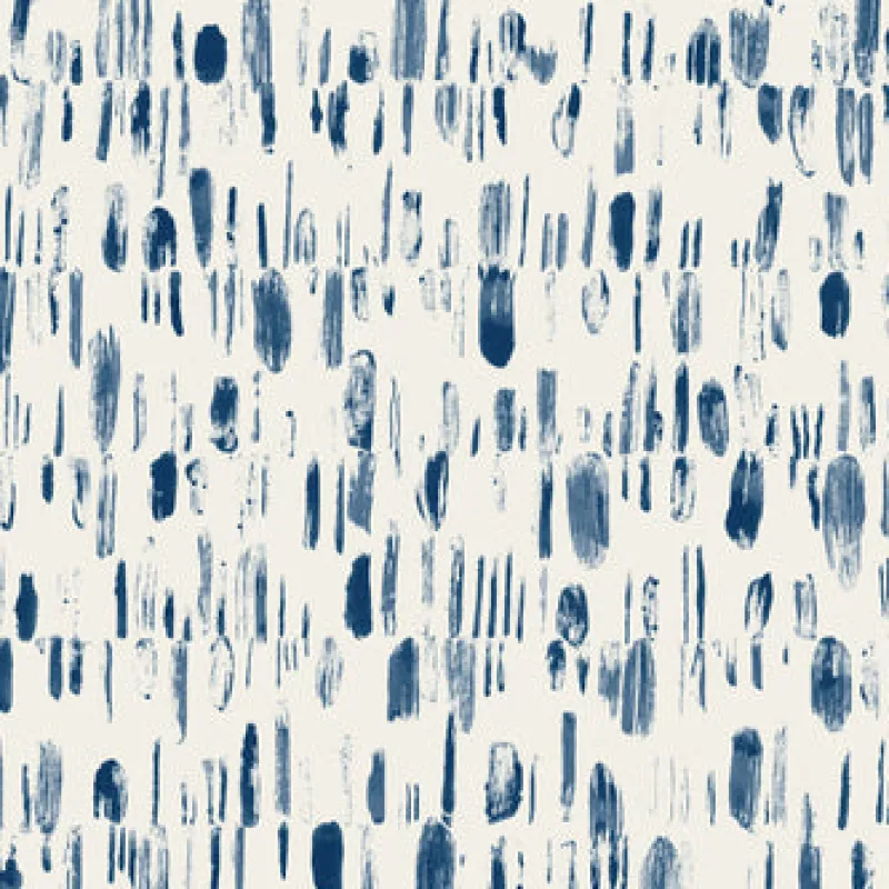 Invite artistic flair to your home with this gorgeous abstract wallpaper! Different sizes of blue paint brushstrokes dot a crisp white backdrop, bringing simple and impactful modern styling to your home. Dwell is an unpasted, acrylic coated wallpaper.