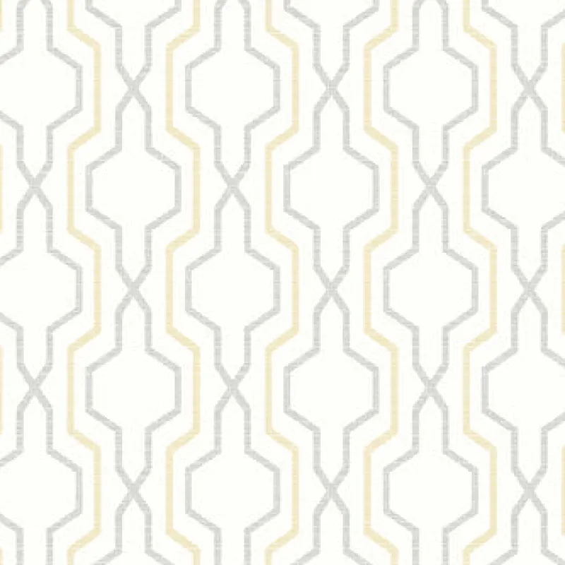 Bring classic elegance to your home with this modern trellis wallpaper. Alternating between yellow and light grey, the columns sport an array of geometric details. Rion is an unpasted, acrylic coated wallpaper.