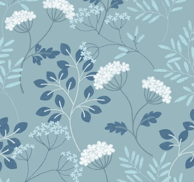 This Scandinavian-inspired floral brings natural elegance to your interiors. The soft blue color palette adds chic charm to simple design. Sorrel is an unpasted, non woven wallpaper.