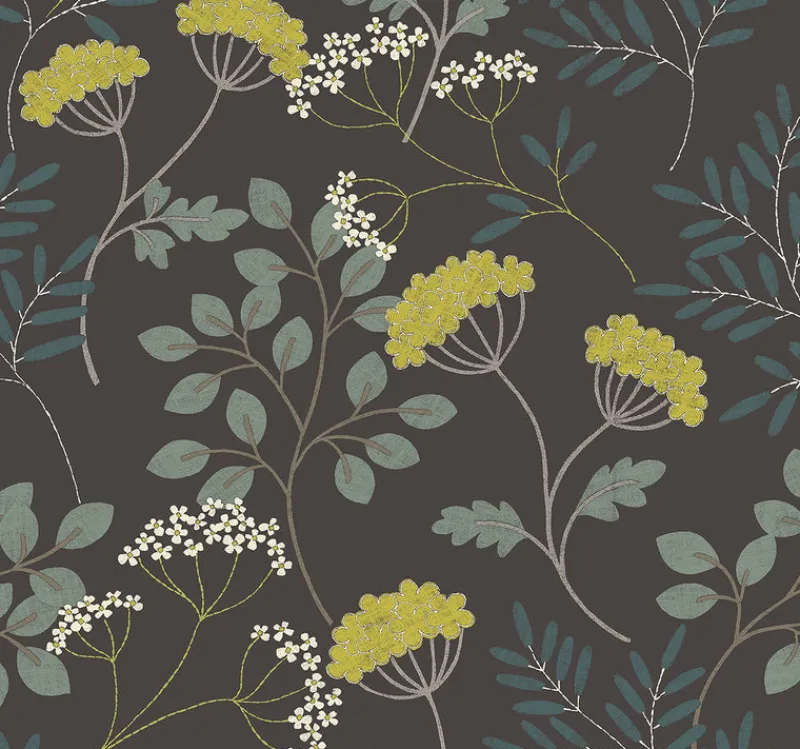 Enjoy the natural sophistication of this Scandinavian-inspired botanical. The yellow florals pop against a palette of blue and black, with clean lines and minimalist details providing simple elegance. Sorrel is an unpasted, non woven wallpaper.