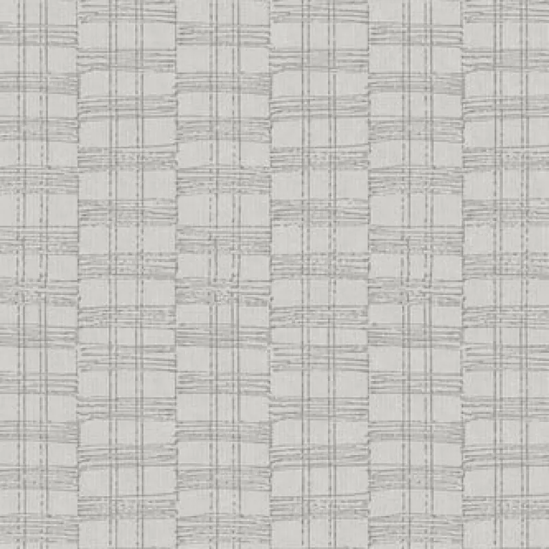 Transform your walls with the chic stylings of this striped wallpaper. This modern take on plaid features columns of alternating stripes inked in metallic silver against a grey faux linen backdrop. Zorya is an unpasted, foil on non woven wallpaper.