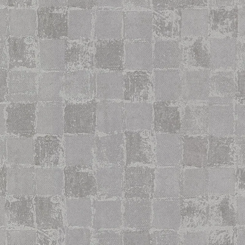 Enjoy the modern and textural appeal of this geometric wallpaper. Grey squares are infused with textural detailing, a glowing silver backdrop providing subtle flair. Varak is an unpasted, non woven wallpaper.