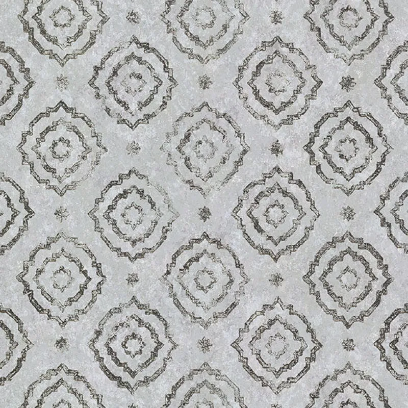 Complete the look of any space with this simple yet sophisticated geometric wallpaper. The variegated light grey backdrop is overlaid with flashing silver medallions and star-shaped accents. Uma is an unpasted, foil on non woven wallpaper.